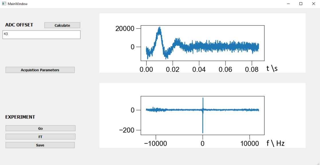 A simple GUI window can be used to acquire a spin echo and immediately Fourier transform the result.¶